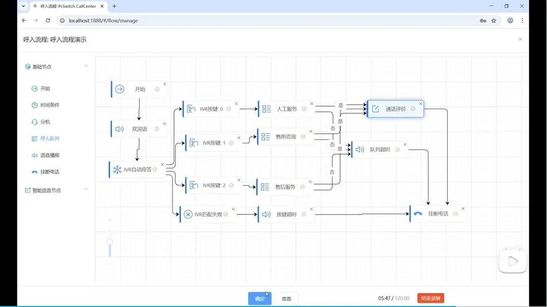智能外呼和呼入流程采用模块化可视化管理方案,就像画流程图一样简单,通过拖拽功能模块即可完成。极大方便了呼入、呼出规则配置工作,同时也极容易读懂规则。