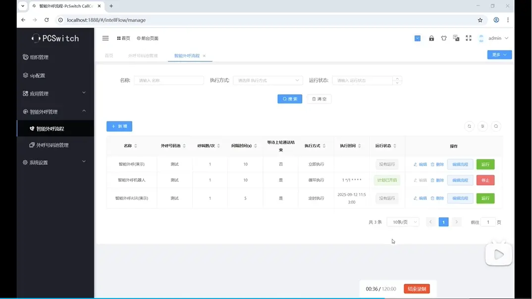 pcswitch呼叫系统为自研系统,采用前端+后端+底层架构设计,数据层采用redis+mariadb+mongodb,即可存储海量数据,也可以很方便扩展。